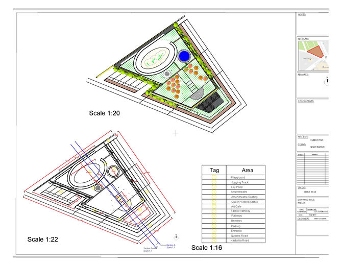 I designed a park around the famous Victoria Statue in Cubbon Park, Bengaluru in collaboration with another student in my course. We were given a blank slate to build on, and we decided to take up the principles of inclusivity, accessibility, and sustainability in our design. Hence we incorporated a jogging track, an inclusive playground, amphitheater and an art café.